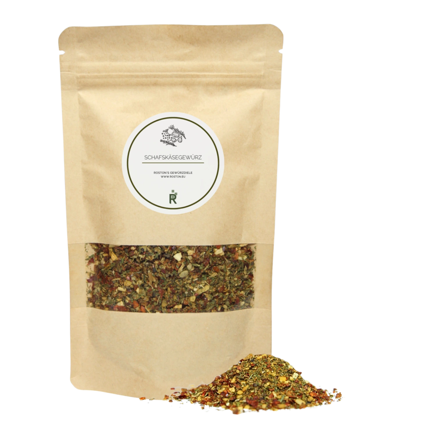 Das Roston Schafskäsegewürz besteht aus getrocknetem Knoblauch, Paprika, Chillies, Pfeffer, Petersilie, Zwiebeln, Thymian, Oregano und Basilikum. Diese Komposition ist eine aromatische Mischung zum Würzen von gebratenem, gebackenem oder „rohem“ Schafskäse. Auch sehr lecker zur Zubereitung einer Schafskäsepaste als Brotaufstrich.